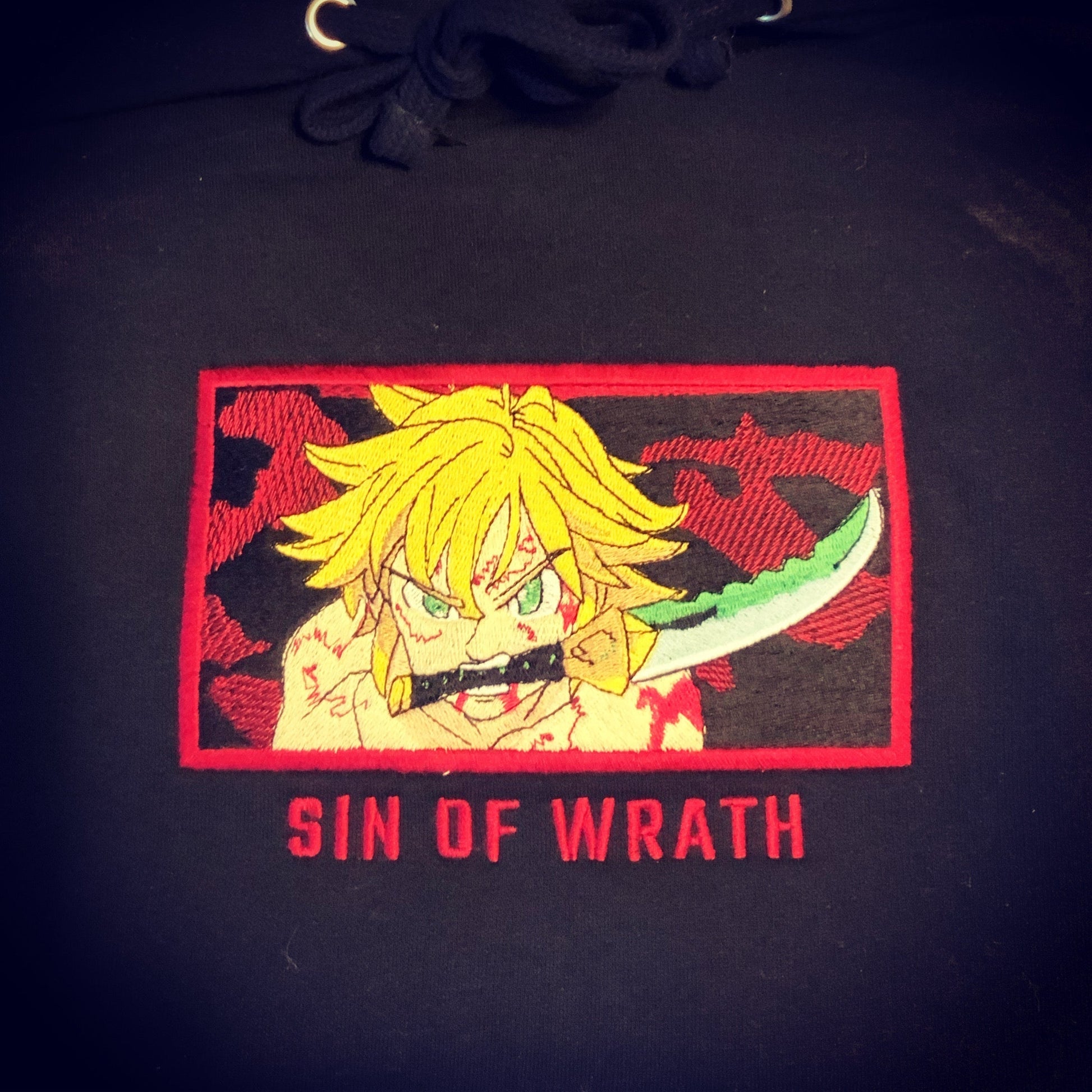 LIMITED SEVEN DEADLY SINS MELIODAS SIN OF WRAITH EMBROIDERED ANIME HOODIE